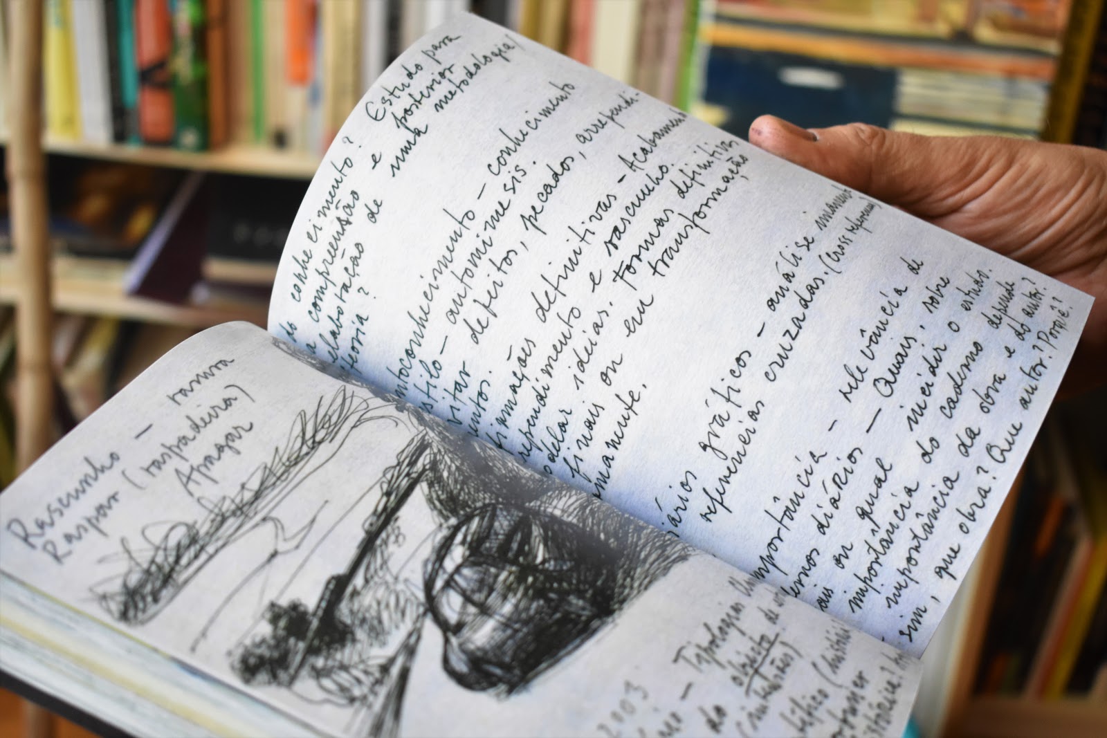 Saímos da pequena sala rectangular e eu percebi que este atelier não tinha espaço físico. No caso do Manuel, o atelier não existe porque qualquer lugar é bom para desenhar ou para fazer experiências. Aquela sala anexa à galeria onde havíamos estado era só um local de passagem e de consulta, não era um sítio para se estar, muito menos para se ficar a trabalhar.