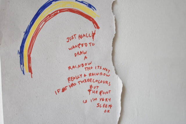 Impressionou-me que conseguisse manter dois discursos em simultâneo sobre o mesmo assunto sem se perder e sem me confundir. Enquanto ia descrevendo que estava a desenvolver este trabalho com os alunos, dizia que agora punha ali um bocado de tinta, depois outra camada, e alguns alunos tinham levantado o problema de serem vegan, agora era só passar o rolo para espalhar as diferentes camadas, que a gelatina não era vegan e ele tinha que encontrar forma deles fazerem o trabalho, vamos pôr aqui uma rede que está ali na gaveta do lixo útil, vai lá buscar ali, e passar aqui o diário gráfico para ficar com uma impressão, porque imagina, recusam-se a utilizar gelatina se for feita de animais e o Manuel nunca tinha pensado nisso. Ao final de um minuto, duas ideias, uma impressão e um pequeno desgosto passageiro: 'epá, estas cores ficaram um bocado feias, não foi?'.